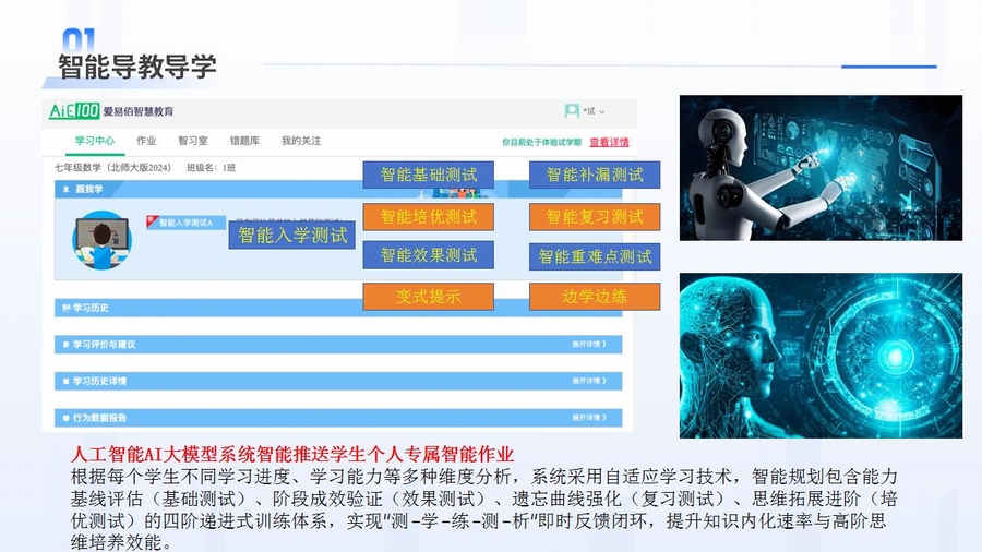 4.自适应学习:系统能够根据每个学生的前置知识水平、学习速度和掌握情况,动态调整学习内容和难度。学得快的学生可以挑战更高阶的任务,而需要更多时间的学生可以得到巩固练习,避免了“一刀切”的教学弊端。